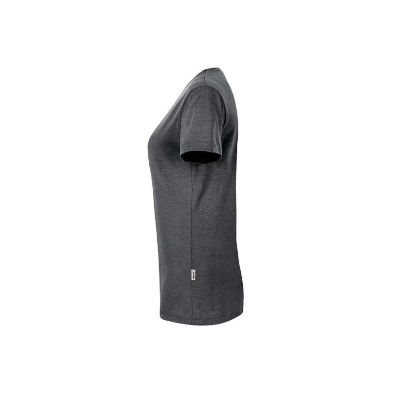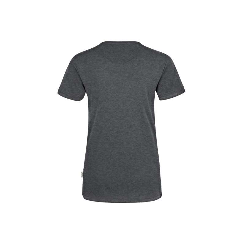 Besonders strapazierfähiges T-Shirt für Damen, mit femininem V-Ausschnitt, geripptem Halsbündchen und Nackenband. Leasingkoller zur einfachen Kennzeichnung in der gewerblichen Wäscherei und Aufhängebänder im Saum. Hergestellt aus weichem, besonders pflegeleichtem und funktionellem, mittelschweren Single-Jersey aus dem HAKRO Performance-Materialmix MIKRALINAR®. Gewebtes HAKRO Necklabel aus hochwertigem Kettsatin mit weichen, ultraschallgeschnittenen Bandkanten für höchsten Tragekomfort und gewebtes HAKRO Flaglabel an der linken Seitennaht.
