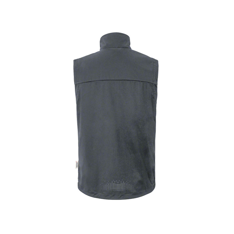 Leichte und atmungsaktive Softshellweste mit wasser- und winddichtem Softshell-Obermaterial. Reflektierende Druckgrafik am verlängerten, abgerundeten Rückenteil. Weitenverstellbarer Saumabschluss mit Tunnelkordelzug und Stoppern. Hochwertiger 2-Wege-Frontreißverschluss mit innenliegender Windschutzpatte, Reißverschlussgarage und Reflexpaspel, seitliche Reißverschlusstaschen mit Reflexapplikation. Alle Click-down-Reißverschlüsse von YKK® in Schwarz. Leichtes, dehnfähiges Softshellmaterial aus Interlock-3-Lagen-Laminat mit TRIACTIVE PRO Technologie: eine wasser- und winddichte Membrane, die gleichzeitig atmungsaktiv ist. Verfügbar auch als Damenmodell. Normale Passform: Regular Fit.
